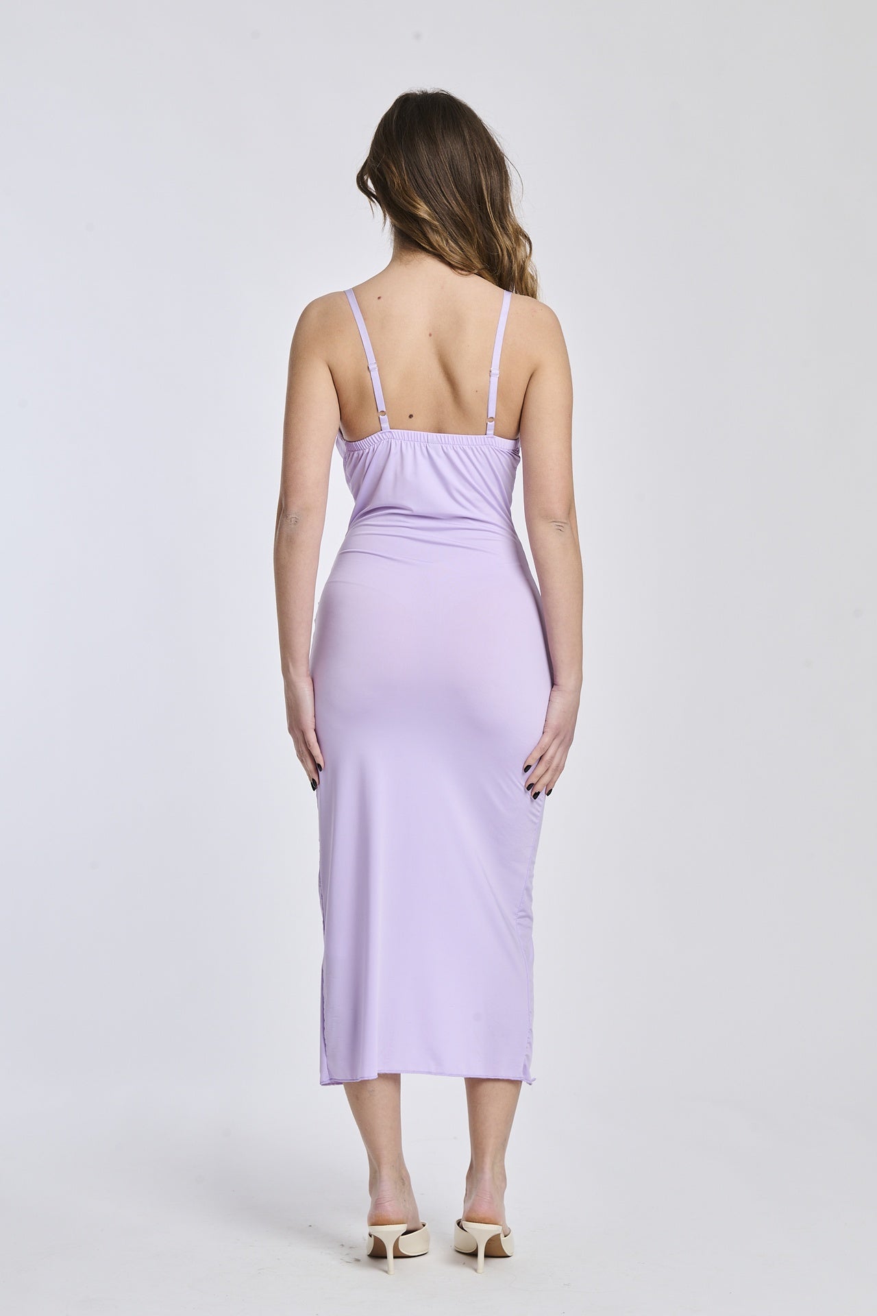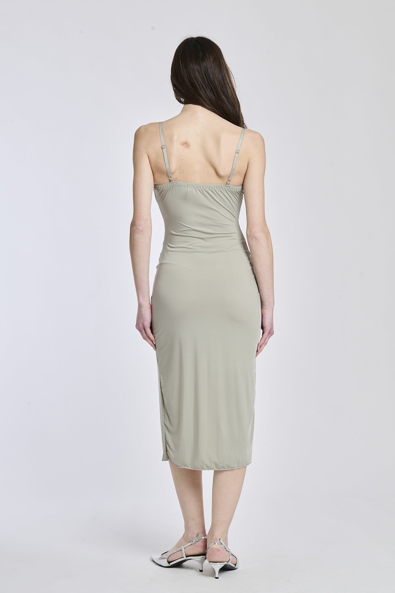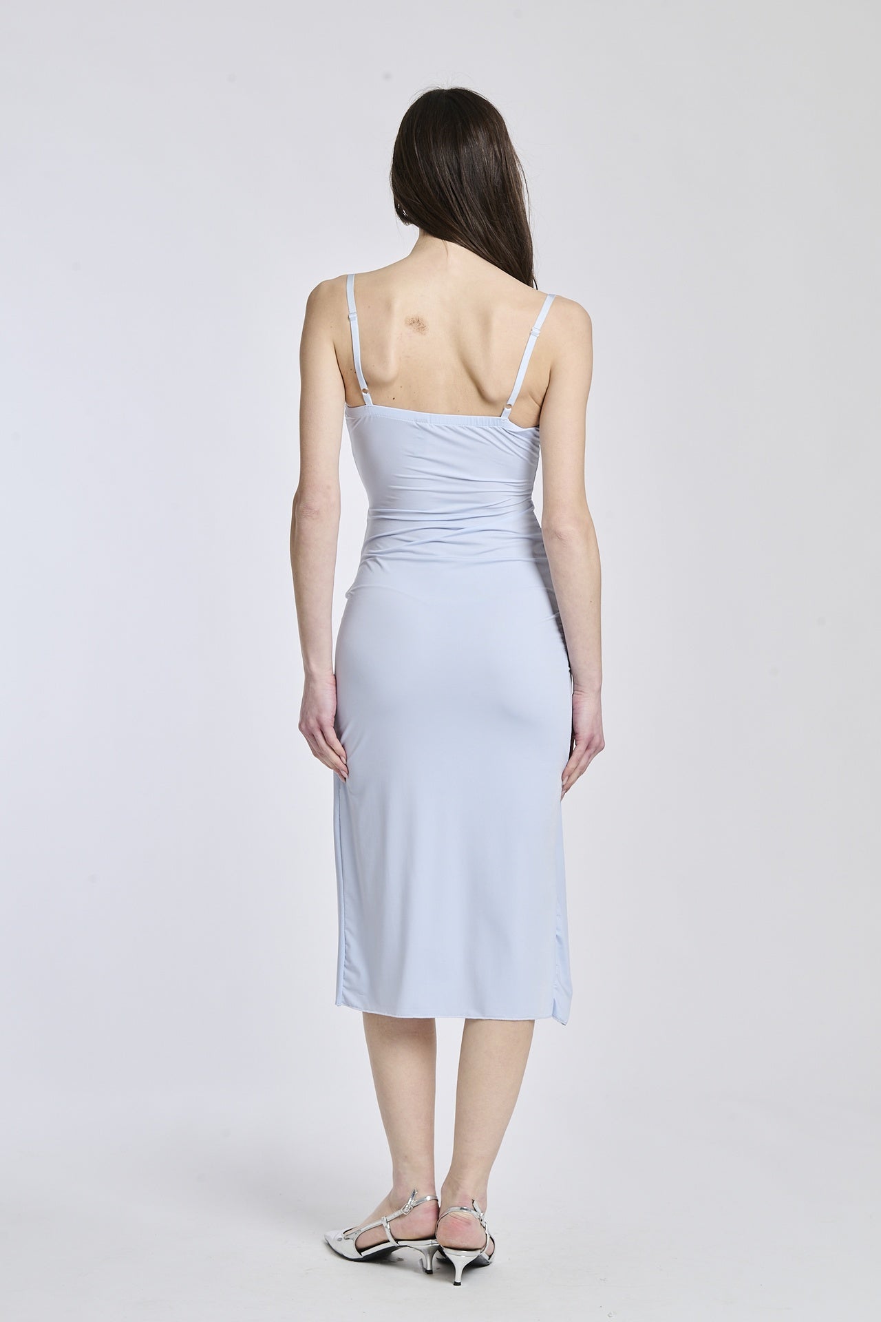 Un abito che parla da sé: raffinato, avvolgente e pensato per esaltare con naturalezza ogni silhouette. Realizzato in tessuto leggero elasticizzato, fascia il corpo con delicatezza, evidenziando il punto vita e accompagnando i movimenti con grazia.