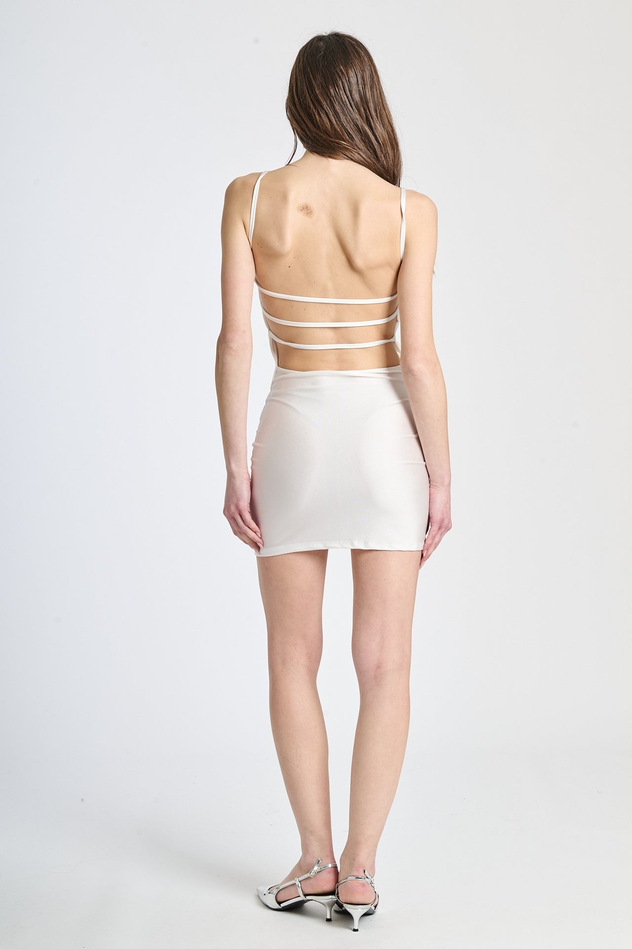 Raffinato ma con un tocco di brillantezza. Questo miniabito in tessuto elasticizzato è arricchito da delicati riflessi lurex che donano luce al tuo outfit senza esagerare. Le spalline sottili e la linea aderente slanciano la figura, mentre il colore tenue lo rende perfetto sia di giorno che di sera.