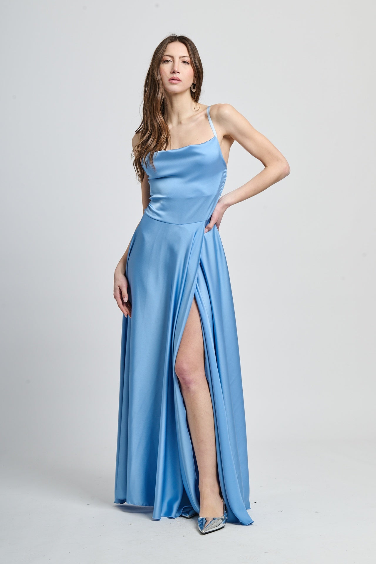 Abito in Raso con Spacco – Eleganza con un Tocco Audace