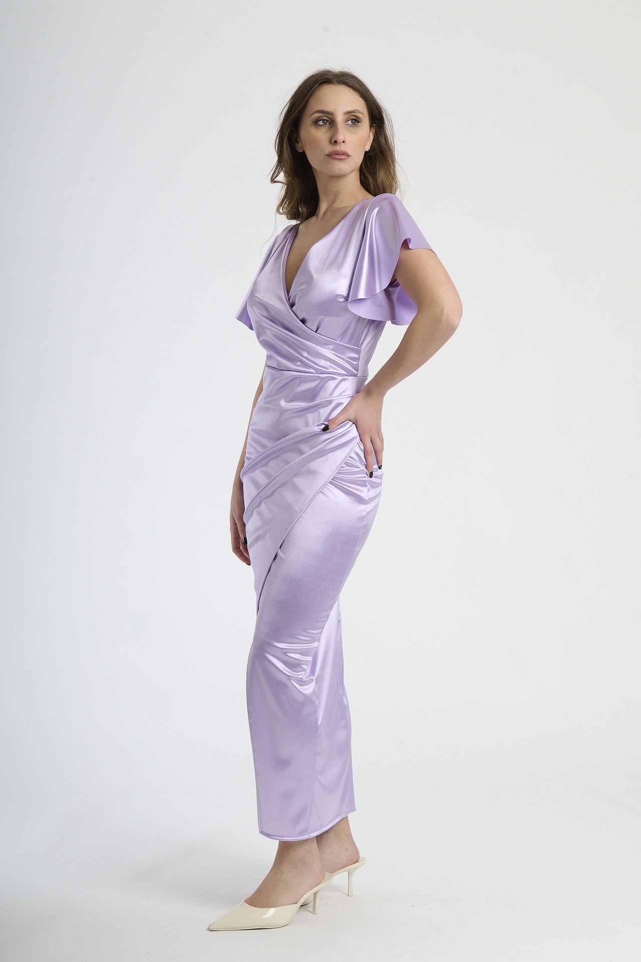Abito Lungo in Satin con Manica a Kimono – Seduzione in Movimento